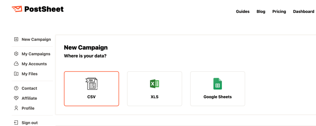 All campaigns moving forward will have multiple options of data sources: Google Sheets, Excel, CSV, and Airtable.